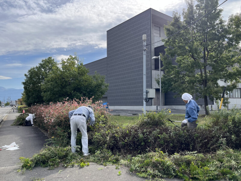 令和7年度 秋のクリーンデー 教育・環境 2025.10.27 令和7年10月18日(土) 毎年恒例の「秋のクリーンデー」を開催いたしました。朝9:00より多くの方々の協力を得て、柳原総合市民センターの草刈りや垣根の剪定を行いました。剪定用の電動バリカンや、ビーバー草刈機を使っての作業であったため、人や車にキズつけないよう注意して作業を行いました。 同時刻に柳原駅周辺では「アヤメの会」の皆さんによるアヤメの植栽作業も行っています。