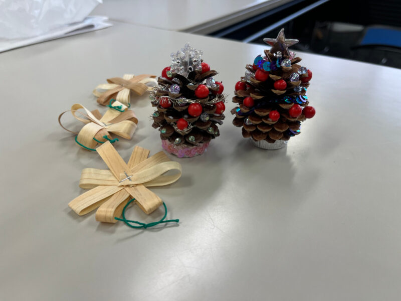 季節の飾りをつくろう「松ぼっくりツリー」 健康・福祉 2025.12.15 令和7年12月9日柳原交流センターにて「松ぼっくりツリー作り」が開催されました。松ぼっくりにみんな思い思いの飾りつけをし、素敵なツリーが完成!今年はかんなくずを使った飾りも作りました。